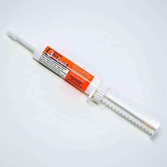 3 Hrs Out is easy to administer (the entire 15cc tube, one time, 3 hours before they go into the Ring) gets amazing results, and compared to the competition, it costs almost HALF the money!